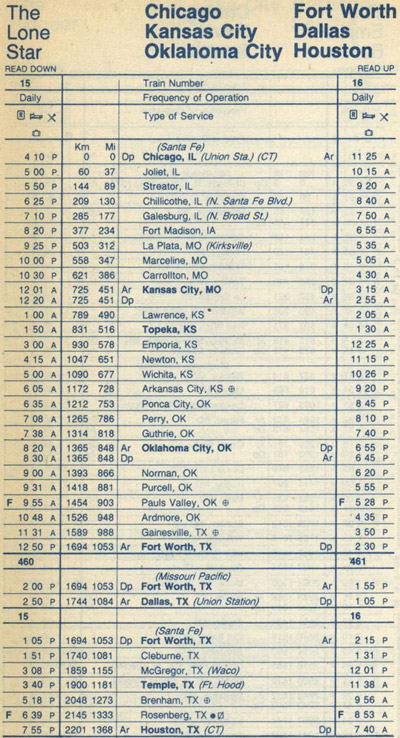 The last Amtrak timetable showing "Lone Star" (issued on July 29, 1979) (Source: timetables.org ©1979 National Railroad Passenger Corporation)