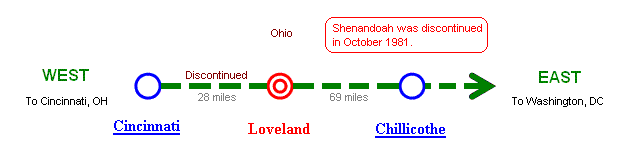 [ Washington, DC - Cumberland, MD - Parkersburg, WV - Cincinnati, OH ] Shenandoah was discontinued in 1981 |