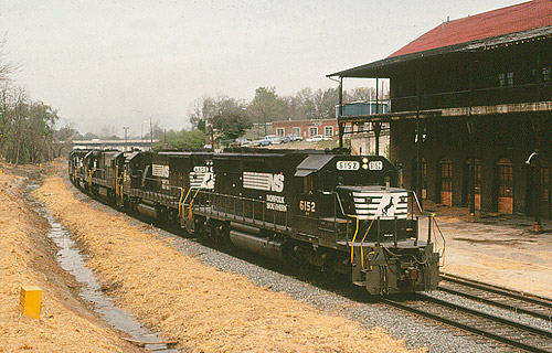 NS Freight Train passing Lynchburg Kemper Street Station (April 1990) |