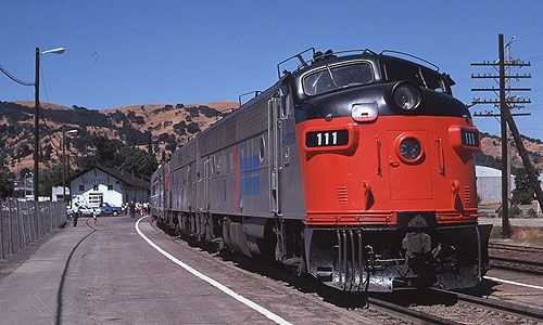 Amtrak FP7A 111 making a stop for Martinez, California (June 1974)