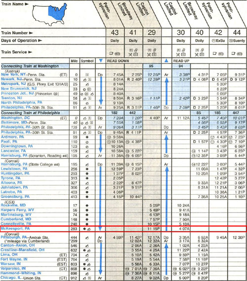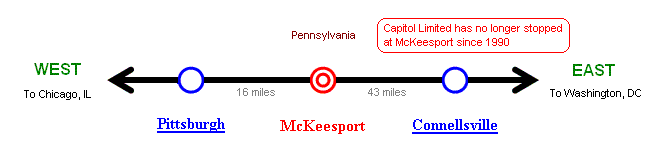Note: Capitol Limited has no longer stopped at McKeesport since 1991 |