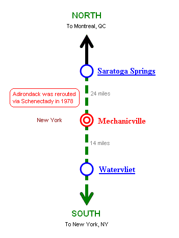 Note: Adirondack was rerouted via Schenectady in 1978 and no longer stops at Mechanicville, NY |