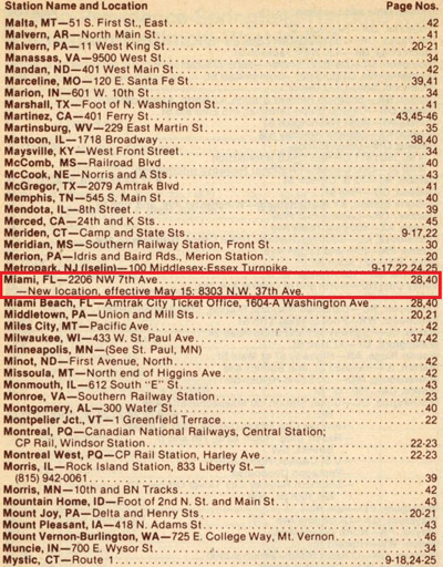The last Amtrak timetable showing Miami SAL Depot (issued on April 30, 1978) (Source: timetables.org ©1978 National Railroad Passenger Corporation) |