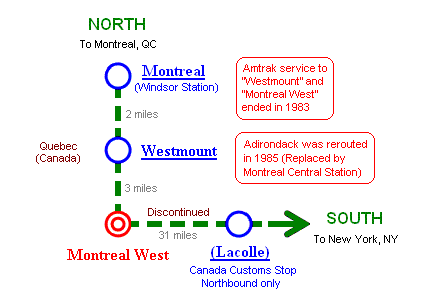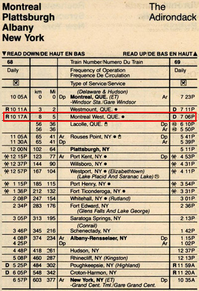 The last Amtrak timetable showing Montreal West Station (issued on April 24, 1983) (Source: timetables.org ©1983 National Railroad Passenger Corporation)