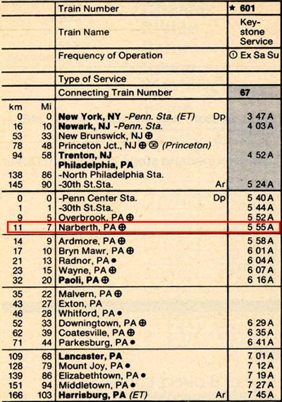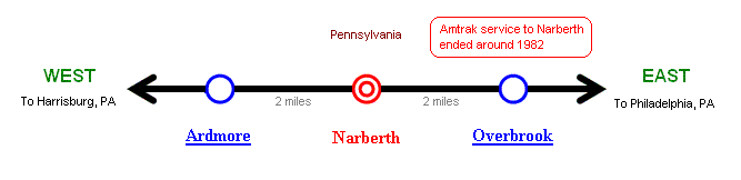 Note: Amtrak service to Narberth, PA ended around 1982 |