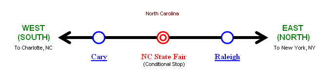 North Carolina State Fair Amtrak station is a conditional stop station. Trains stop on the days when the North Carolina State Fair is open. Only Carolinian Train #79 and #80 stop at this station, but Piedmont trains do not. Train #79 from New York stops to only receive passengers and Train #80 from Charlotte stops to only discharge passengers. For more detail of 2010 North Carolina State Fair Amtrak Station Information, please click HERE (pdf file). |
