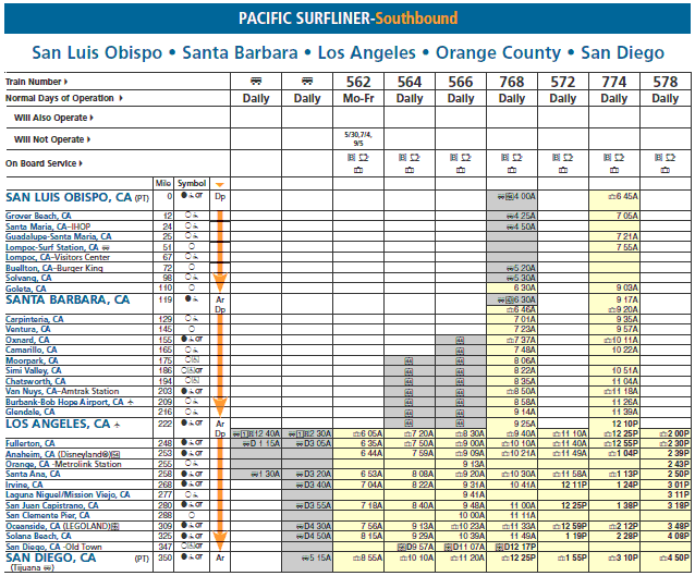 Note: Pacific Surfliner no longer stops, Service ended in Fall 2012. The 2012FY ridership was 2,302. |