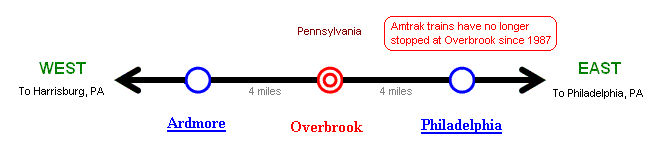 Note: Keystone has no longer stopped at Overbrook since 1987. |