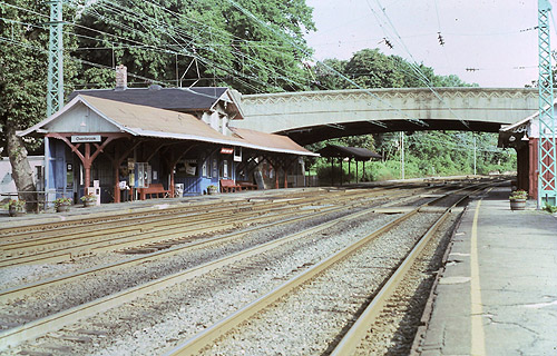 Only westbound Amtrak train stopped at Overbrook until 1987 Former Penn RR Overbrook Station currently used for SEPTA (Photo: April 1982)