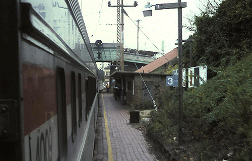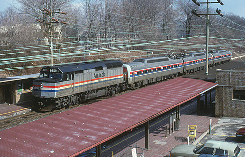 Amtrak Train stopped at Paoli, PA Station (March 1988)