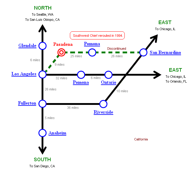 Note: Southwest Chief was rerouted in January 1994. |