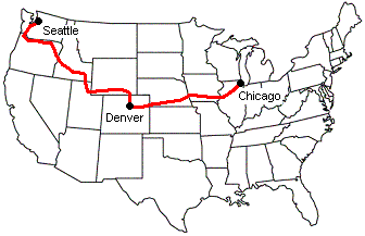 Amtrak Eastbound Pioneer at The Dalles, OR (August 1994) |