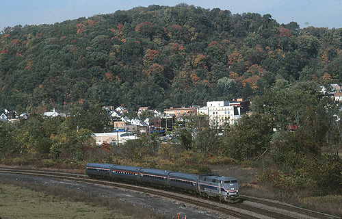 Amtrak train is running near former Amtrak Pitcairn Station (October 1998) |