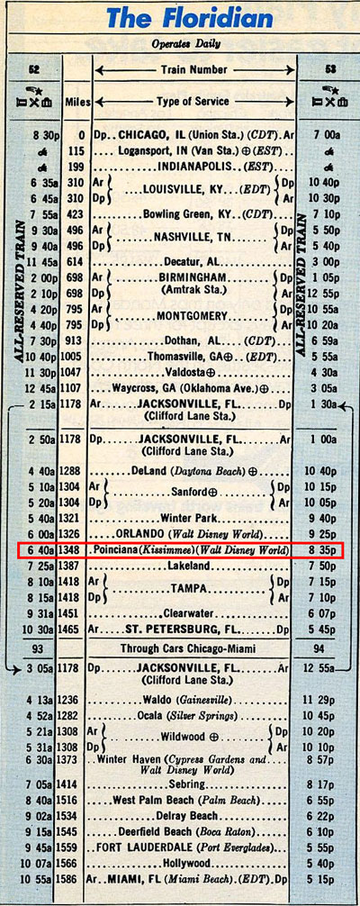 The last Floridian timetable showing Poinciana Station (issued on May 15, 1975) (Source: timetables.org ©1975 National Railroad Passenger Corporation)