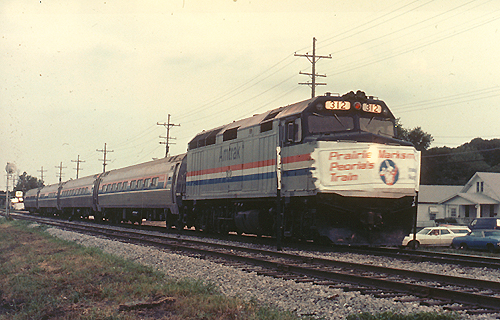 First Run Prairie Marksman #312 leaving East Peoria Station (August 1980)