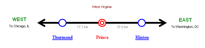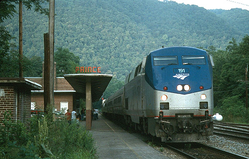 Amtrak Cardinal Westbound Train at Prince, WV Station (July 2008) |