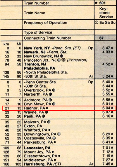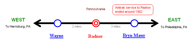 Note: Amtrak service to Radnor, PA ended around 1982 |