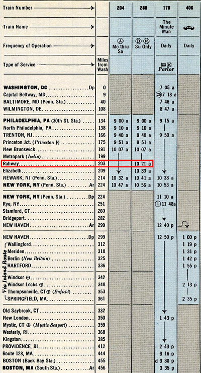 The last Amtrak timetable showing Rahway Station (issued on May 15, 1975 rev.) (Source: timetables.org ©1975 National Railroad Passenger Corporation)