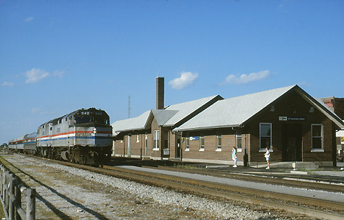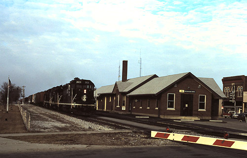 Illinois Central Freight Train passing Rantoul Station (February 1990)