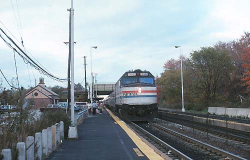 Amtrak E8A Locomotive at Route 128 Station (November 1974)