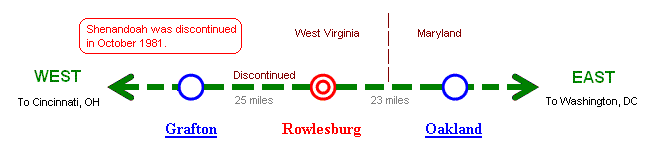 [ Washington, DC - Cumberland, MD - Parkersburg, WV - Cincinnati, OH ] Shenandoah was discontinued in October 1981 |