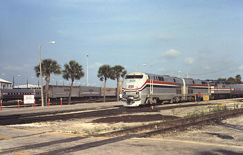 Amtrak P40 and F40PH at Sanford Auto Station (June 1993) |