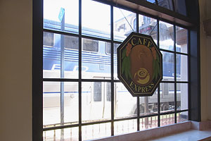 Looking at Train from Cafe |