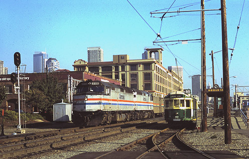 Amtrak Train and Seattle Streetcar (October 2000) |