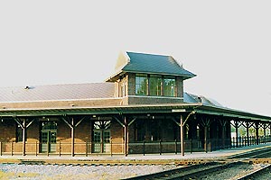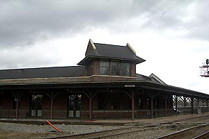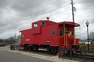 Caboose in front of Station |