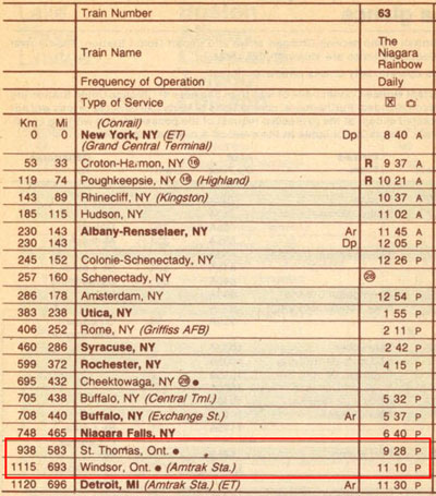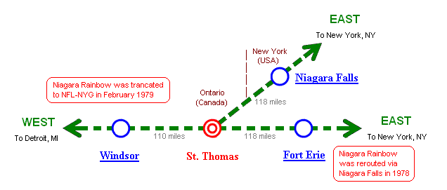 Note: Amtrak "Niagara Rainbow" was truncated to [NFL-NYG] in February 1979 |
