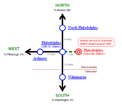 Note: Amtrak Keystone Service to Suburban Station ended around 1988 |