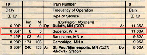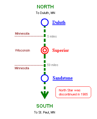 Note: Service to Superior ended in 1984 before North Star was discontinued in April 1985 |
