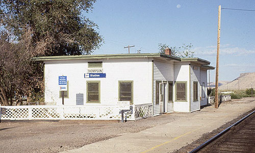 The flag stop station, Thompson Utah was eliminated in 1997. At the same time, Desert Wind (Chicago - Las Vegas - Los Angeles) was also discontinued. Green River Station opened instead of Thompson. Amtrak Thompson station was located between Green River, UT and Grand Junction, CO on the California Zephyr route.