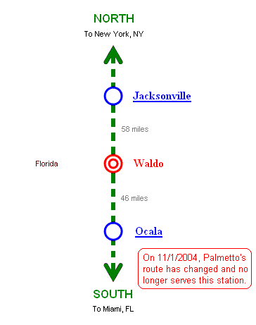 [ New York, NY - Florence, SC - Tampa, FL - Miami, FL ] Palmetto service between Savannah, GA and Miami, FL was discontinued on November 1, 2004 |