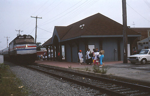 Amtrak Train arriving at Wareham Station (July 1986) |