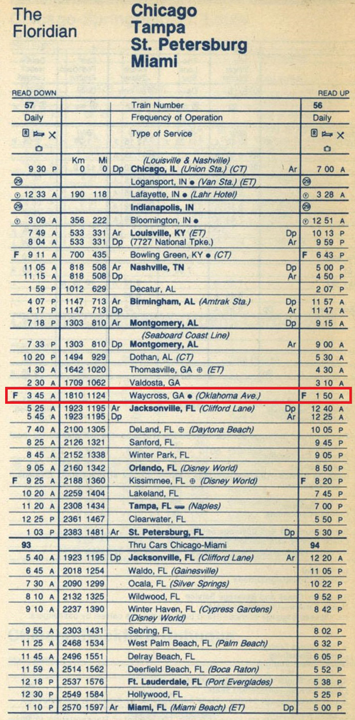 [ Chicago, IL - Nashville, TN - St. Petersburg/Miami, FL ] Floridian was discontinued in October 1979 |