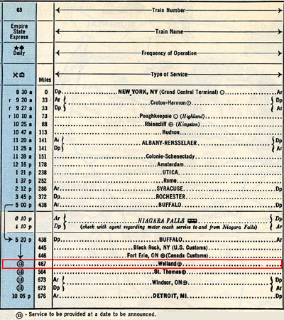 [ Detroit, MI - Windsor, ON - Buffalo, NY - New York, NY ] Amtrak planed to stop at Welland, ON in 1975, but it never happened |