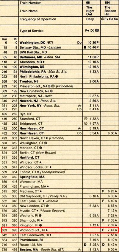 Note: Amtrak ended service to Shannock in October 1981 due to discontinuance of Beacon Hill. |