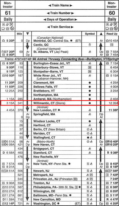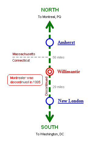 Note: Montrealer started serving Willimantic, CT in 1992 and was discontinued in 1995. |