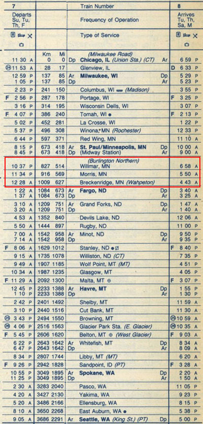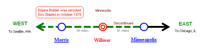 Note: Empire Builder was rerouted via Staples in 1979 |