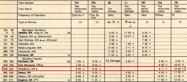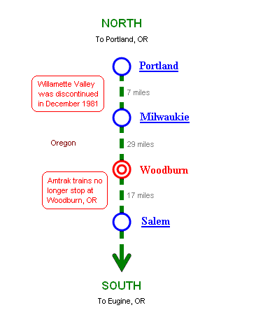 Note: Willamette Valley was discontinued in December 1981 (Amtrak Service to Woodburn, OR ended in December 1981) |