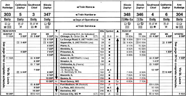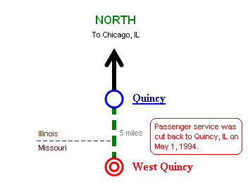 Note: Passenger service was cut back to Quincy, IL on May 1, 1994. |