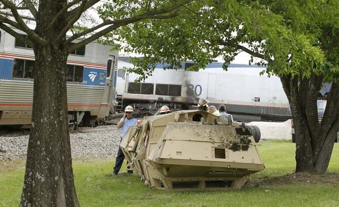 Crescent, train 20 (April 20) hit a tractor/trailer carring a military tank at Slidell, LA, which is about 35 miles east of New Orleans. The train was about an hour into its trip. Minor injuries reported. Derailed: Engine 187 Engine 80 Baggage Crew Viewliner Viewliner