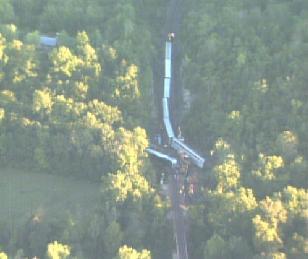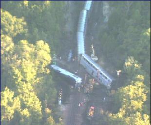 tracks from a rockslide. There were 30 injuries, none life threatening.