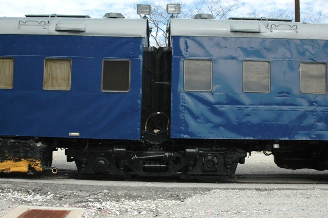 This is a view of the unique articulation of these Ex SP coaches. These cars are more roomy than their standard counterpart.