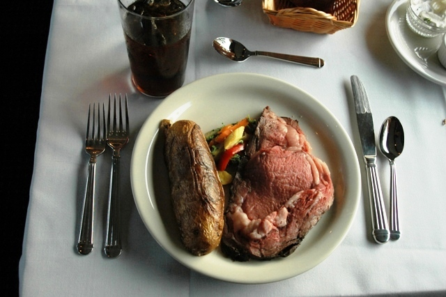 I had prime rib with baked potato and mixed vegetables. I wondered