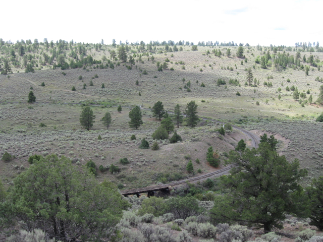 The rail line offers views of mountains and valleys west of Lava Tank.