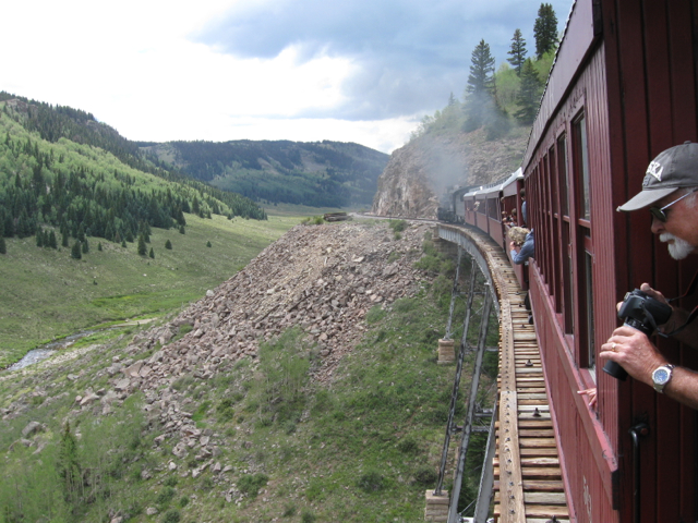Crossing Hangman’s Trestle near milepost 286 approximately 5 miles west of Antonito