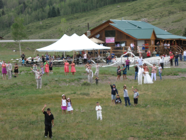 Passing a wedding party at Los Piños as the train prepares to round a horseshoe curve