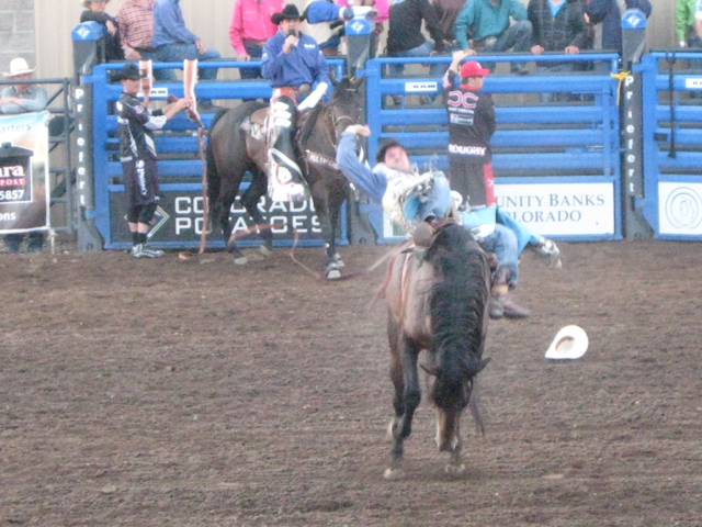 ![]() A bucking bronco at the San Luis Valley Ski Hi Stampede